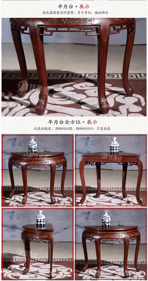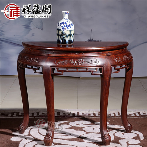 这款产品 名称叫 红木条案半月台客厅家具TA-2,是我们祥蕴阁热销红木条案产品之一